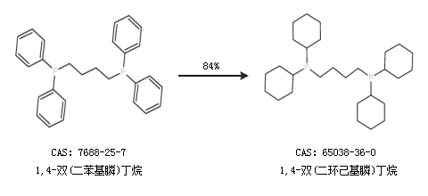 1.通過1,4-雙(二苯基膦)丁烷合成1,4-雙(二環(huán)己基膦)丁烷,收率約84%;