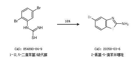 2.通過1-(2,5-二溴苯基)硫代脲合成2-氨基-5-溴苯并噻唑,收率約16%;