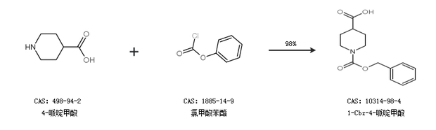 2.通過(guò)4-哌啶甲酸和氯甲酸苯酯合成1-Cbz-4-哌啶甲酸,收率約98%;