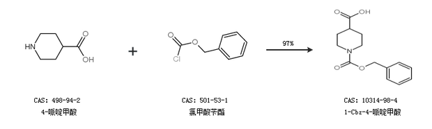 1.通過(guò)4-哌啶甲酸和氯甲酸芐酯合成1-Cbz-4-哌啶甲酸,收率約97%;