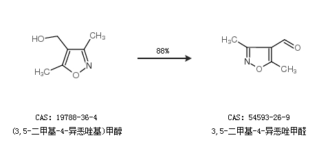 1.通過(guò)(3,5-二甲基-4-異惡唑基)甲醇合成3,5-二甲基-4-異惡唑甲醛,收率約88%;