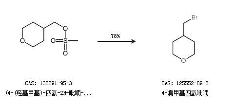 1.通過(4-(羥基甲基)-四氫-2H-吡喃-4-基)甲烷磺酸鹽合成4-溴甲基四氫吡喃,收率約78%;