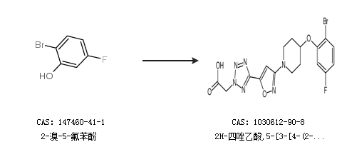 2.通過(guò)2-溴-5-氟苯酚合成2H-四唑乙酸,5-[3-[4-(2-溴-5-氟苯氧基)-1-哌啶基]-5-異惡唑]-