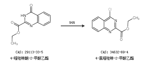 1.通過4-喹唑啉酮-2-甲酸乙酯合成4-氯喹唑啉-2-甲酸乙酯,收率約94%;