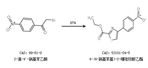 2.通過2-溴-4''-硝基苯乙酮合成4-(4-硝基苯基)-2-噻唑羧酸乙酯,收率約87%;