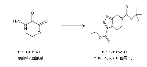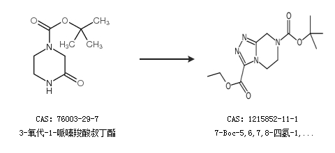 2.通過3-氧代-1-哌嗪羧酸叔丁酯合成7-Boc-5,6,7,8-四氫-1,2,4-三唑并[4,5-a]吡嗪-3-甲酸乙酯