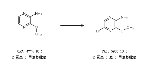 2.通過2-氨基-3-甲氧基吡嗪合成2-氨基-5-溴-3-甲氧基吡嗪