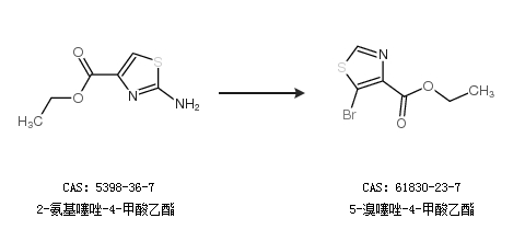 2.通過2-氨基噻唑-4-甲酸乙酯合成5-溴噻唑-4-甲酸乙酯