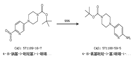 1.通過4-(6-硝基-3-吡啶基)-1-哌嗪甲酸叔丁酯合成4-(6-氨基吡啶-3-基)哌嗪-1-羧酸叔丁酯,收率約99%;