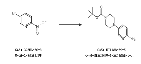 2.通過5-溴-2-硝基吡啶合成4-(6-氨基吡啶-3-基)哌嗪-1-羧酸叔丁酯