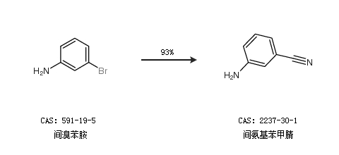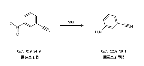 1.通過間硝基苯腈合成間氨基苯甲腈,收率約99%;