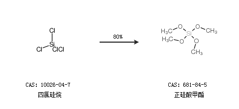 2.通過四氯硅烷合成正硅酸甲酯,收率約80%;