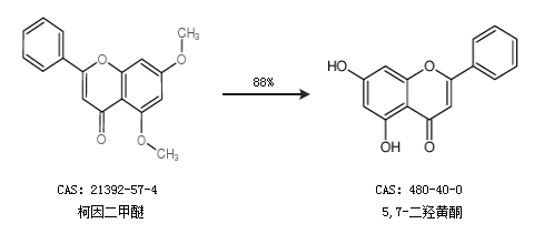 1.通過柯因二甲醚合成5,7-二羥黃酮,收率約88%;