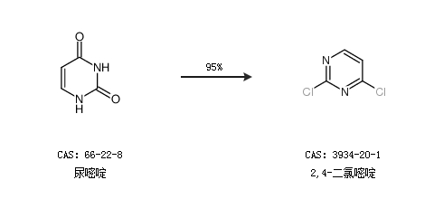 1.通過(guò)尿嘧啶合成2,4-二氯嘧啶,收率約95%;