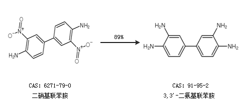 1.通過二硝基聯(lián)苯胺合成3,3''-二氨基聯(lián)苯胺,收率約89%;