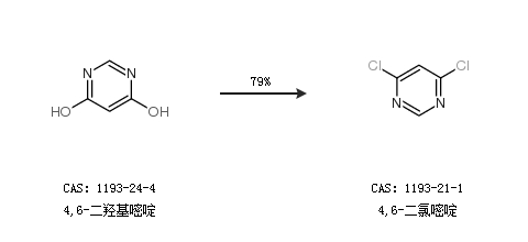 1.通過4,6-二羥基嘧啶合成4,6-二氯嘧啶,收率約79%;