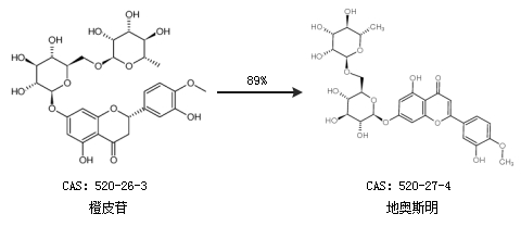 1.通過橙皮苷合成地奧斯明,收率約89%;