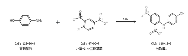 2.通過復(fù)硝酚鈉和1-氯-2,4-二硝基苯合成分散黃1,收率約41%;