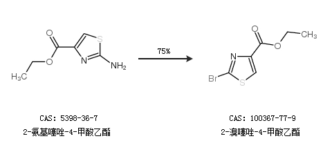 1.通過(guò)2-氨基噻唑-4-甲酸乙酯合成2-溴噻唑-4-甲酸乙酯,收率約75%;