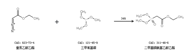 1.通過重氮乙酸乙酯和三甲氧基磷合成二甲基膦;宜嵋阴,收率約34%;