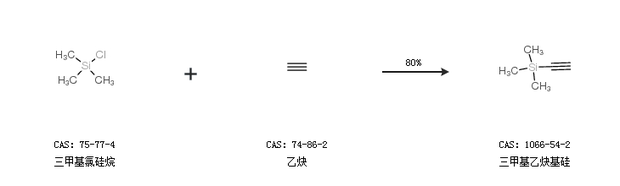 1.通過三甲基氯硅烷和乙炔合成三甲基乙炔基硅,收率約80%;