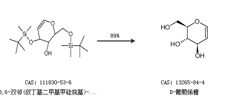 2.通過3,6-雙鄰(叔丁基二甲基甲硅烷基)-D-葡萄烯糖合成D-葡萄烯糖,收率約89%;