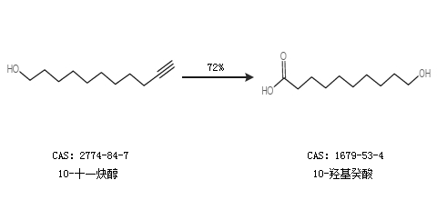 1.通過10-十一炔醇合成10-羥基癸酸,收率約72%;
