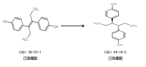 中文別名 4,4ˊ-二羥-Γ,Δ-二苯己烷;4,4''-(1,2-二乙基亞乙基)二苯酚;己雌酚,HEXOESTROL;去氫己烯雌酚;六羥春情素;