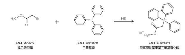 1.通過溴乙酸甲酯和三苯基膦合成甲氧甲酰基甲基三苯基溴化膦,收率約94%;