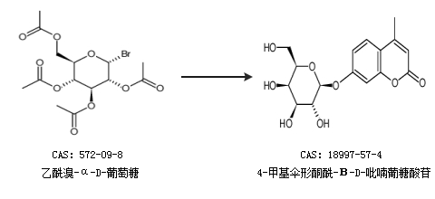 2.通過乙酰溴-α-D-葡萄糖合成4-甲基傘形酮酰-Β-D-吡喃葡糖酸苷