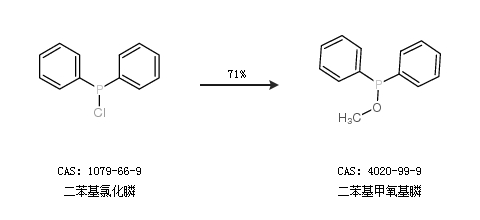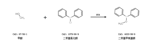 1.通過甲醇和二苯基氯化膦合成二苯基甲氧基膦,收率約85%;