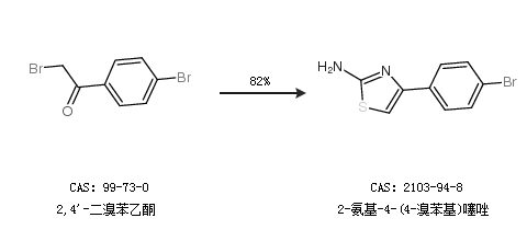 2.通過(guò)2,4''-二溴苯乙酮合成2-氨基-4-(4-溴苯基)噻唑,收率約82%;