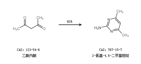 2.通過乙酰丙酮合成2-氨基-4,6-二甲基嘧啶,收率約92%;