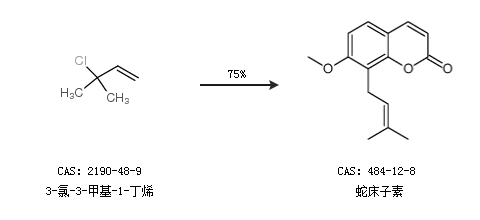 1.通過(guò)3-氯-3-甲基-1-丁烯合成蛇床子素,收率約75%;
