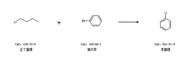 由溴苯或氯苯與金屬鋰在乙醚或乙醚-苯混合液中反應制得或由二苯基汞與金屬鋰在甲苯中作用而得。苯基鋰的合成一般是在乙醚或THF中,低溫下與丁基鋰反應。 能和水劇烈反應。