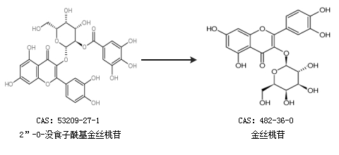 2.通過2”-O-沒食子?;鸾z桃苷合成金絲桃苷