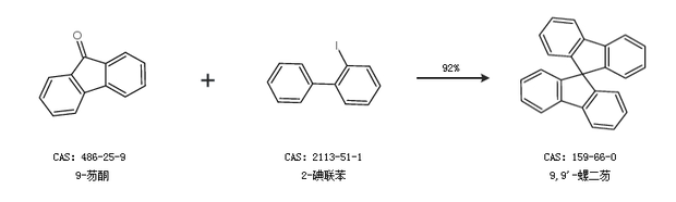 1.通過(guò)9-芴酮和2-碘聯(lián)苯合成9,9''-螺二芴,收率約92%;