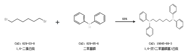 1.通過(guò)1,6-二溴己烷和二苯基膦合成1,6-雙(二苯基膦基)己烷,收率約68%;