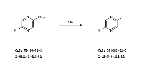 1.通過2-氨基-5-溴吡嗪合成2-溴-5-羥基吡嗪,收率約73%;