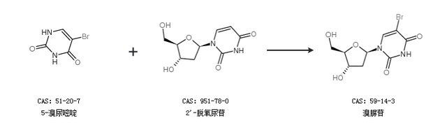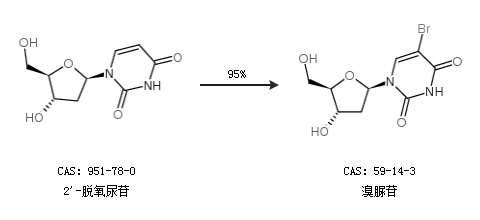1.通過(guò)2''-脫氧尿苷合成溴脲苷,收率約95%;