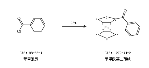 1.通過二茂鐵和苯甲酰氯合成苯甲?;F,收率約94%;