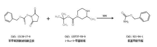 1.通過苯甲氧羰酰琥珀酰亞胺和1-Boc-3-甲基哌嗪合成氨基甲酸芐酯,收率約99%;