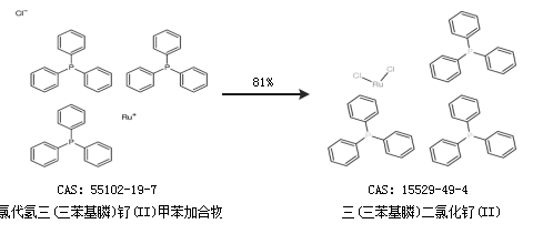英文別名 Tris(triphenylphosphine)ruthenium(II) chloride;Dichlorotris(triphenylphosphino)ruthenium (II);Tris(triphenylphosphine)ruthenium(II) dichloride;Dichlorotris(triphenylphosphine)ruthenium(II);