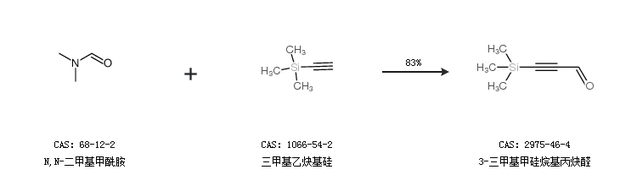1.通過N,N-二甲基甲酰胺和三甲基乙炔基硅合成3-三甲基甲硅烷基丙炔醛,收率約83%;