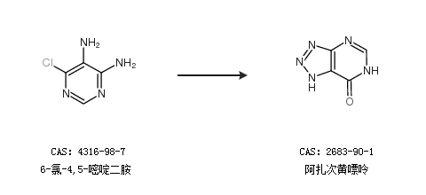 2.通過(guò)6-氯-4,5-嘧啶二胺合成阿扎次黃嘌呤