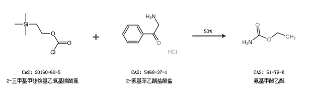 2.通過2-三甲基甲硅烷基乙氧基羰酰氯和2-氨基苯乙酮鹽酸鹽合成氨基甲酸乙酯,收率約53%;