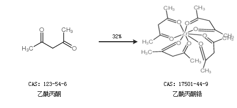 2.通過乙酰丙酮合成乙酰丙酮鋯,收率約32%;
