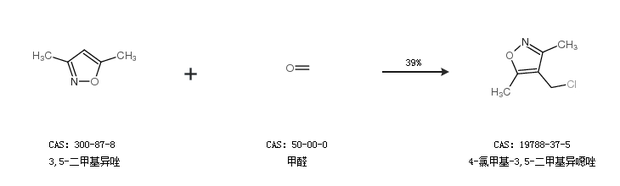 1.通過3,5-二甲基異唑和甲醛合成4-氯甲基-3,5-二甲基異噁唑,收率約39%;