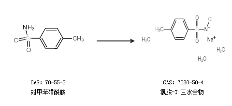 中文別名 氯胺T鈉;氯胺T三水合物;氯胺T,三水合物;三水合氯銨-T;對(duì)甲苯磺酰氯胺鈉三水合物;對(duì)甲苯;