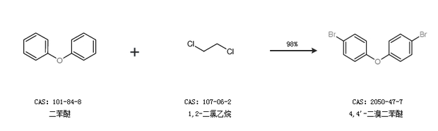 2.通過(guò)二苯醚和1,2-二氯乙烷合成4,4''-二溴二苯醚,收率約98%;